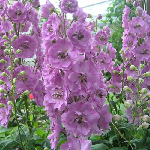 Дельфиниум Lavender Obelisk отличается красивыми, изящными цветками, мощным плотным соцветием, устойчивостью к заболеваниям. Куст плотный, с прочными стеблями, высотой 160-180 см. Цветет обильно и длительно. Соцветия высотой около 90 см, пирамидальной формы, из 70-80 полумахровых (нежного лавандового цвета с черным глазком) цветков, диаметром 6-7 см.