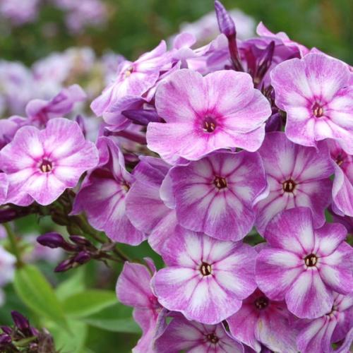 Цветки флокса Мулатка - это изумительное слияние яркой краски и утонченной изысканности формы. Каждый лепесток был, словно специально разрисован растекающейся насыщенной акварельной краской, каждый в своей собственной уникальной манере. Один имеет темно-лиловый глазок и белое расплывающееся пятно в центре, в другом, центральное колечкоприобрело темно-васильковую окраску, удивительным образом гармонирующую с лилово-баклажанной каемкой. Соцветие выглядит элегантно, округло и массивно. Подойдя к нему, сразу же ощущаешь волну легкого, сладковатого цветочного аромата.