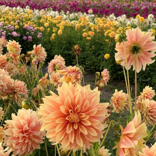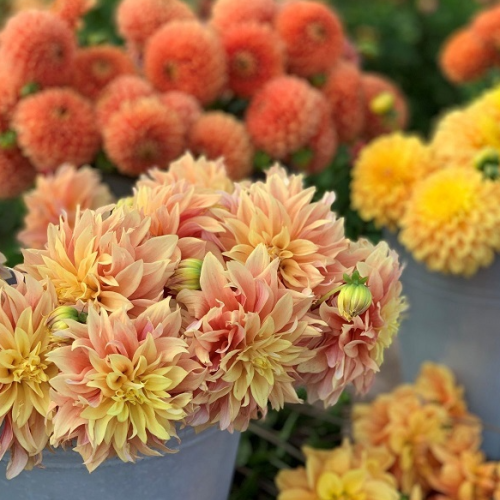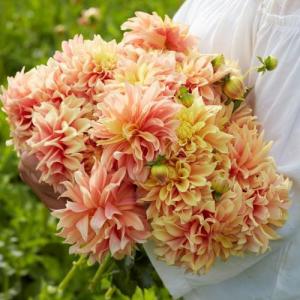 После срезки георгины почти не распускаются, поэтому важно не срезать их слишком рано. Срезайте цветы, когда они раскрыты на три четверти, но не перезрели. Проверьте обратную сторону каждого цветка: лепестки должны быть плотными и сочными, а не похожими на бумагу или слегка обезвоженными. Поместите цветы в воду с увлажнителем или придайте стеблям форму, опустив их в воду, нагретую до 71–82 °C (почти кипящую), и дайте им остыть в течение часа. Срок жизни цветка в вазе — 5 дней.