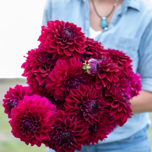 После срезки георгины почти не раскрываются, поэтому важно не срезать их слишком рано. Срезайте цветы, когда они раскрыты на три четверти, но не перезрели. Проверьте обратную сторону каждого цветка: лепестки должны быть плотными и сочными, а не похожими на бумагу или слегка обезвоженными. Поместите цветы в воду с гидратором или прижгите концы стеблей, опустив их в воду, нагретую до 71–82 °C (почти до кипения), и дайте остыть в течение часа. Срок жизни цветка в вазе — 5 дней.