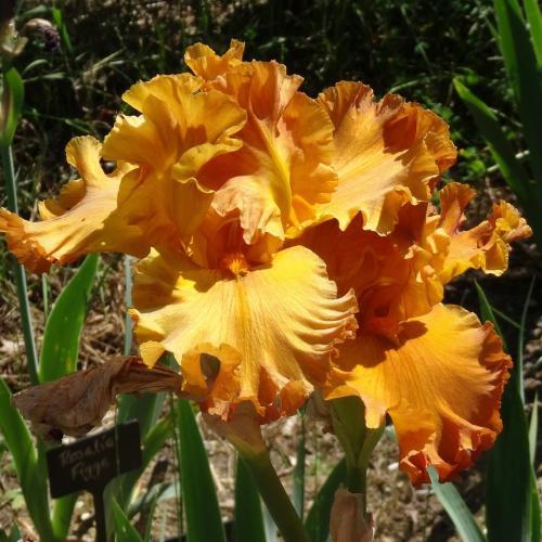 Название "Golden Panther" - "Золотая пантера" как нельзя лучше отражает невероятный цвет и изящество этого сорта. Цвет стандартов бронзово-оранжевый, фолы оранжево-рыжие, с более темными прожилками и более насыщенной окантовкой. Бородка также золотисто-рыжая. Цветок не очень крупный, но очень сильно гофрированный. Сорт заслуженно удостоен многочисленных наград.