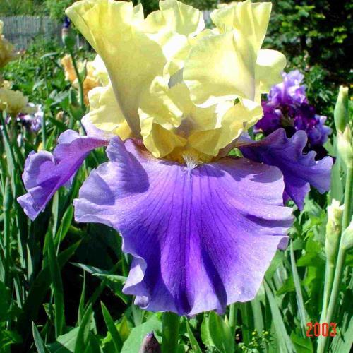 Гофрированный цветок. оригинальный и всегда разный.Среднепозднего периода цветения. Имеет незначительный пряный аромат. С - лимонно-золотистые; Ф- желтовато-коричневые, с сине-лавандовыми проблесками и янтарными основаниями и окантовкой; Б - горчично-золотая.