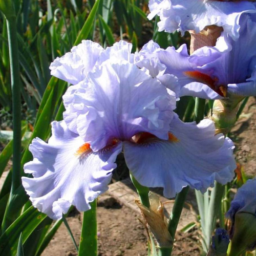 Любимец, невероятный цвет и гофрировка. С - голубые, с розовинкой в основаниях; Ф - голубые, плечики - чуть темнее, с розовинкой. Стайлы – голубые; Б - апельсиновые.