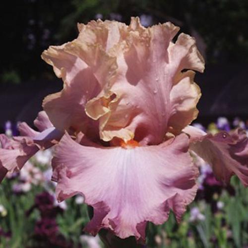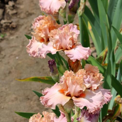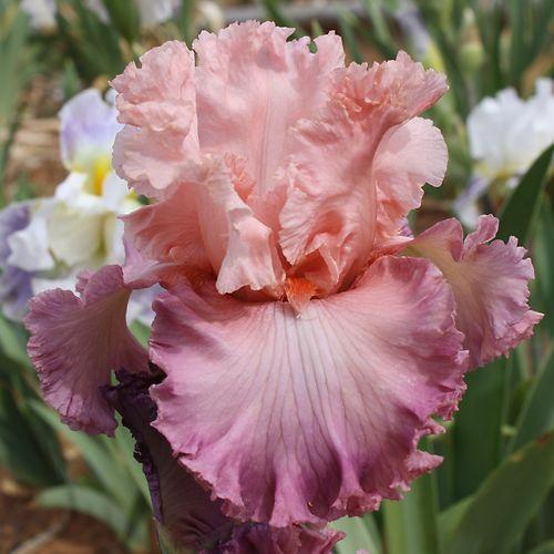 Цветение в конце сезона. Стандарты: кораллово-персиковый цвет с золотисто-желтым краем; более темный персиковый цвет на крыльях; белый цвет на кончике бороды, переходящий в средне-орхидеевый, а затем в дымчато-розовый с более темными дымчато-розовыми прядями; с возрастом светлеет; борода оранжевая; легкий сладковатый аромат