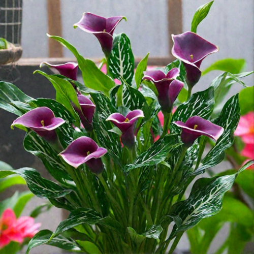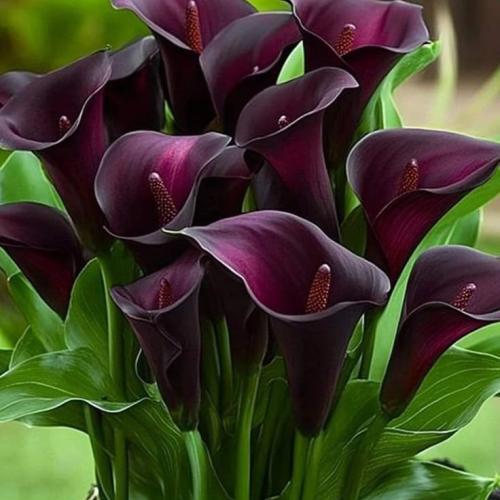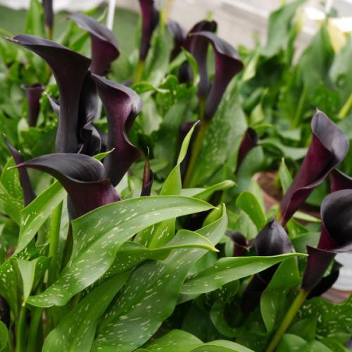 Для посадки в цветники и в контейнера, подойдут гибридные каллы. Они могут быть желтыми, красными, фиолетовыми и даже черными. Их можно скомпоновать, создав уникальные композиции, но и по отдельности они выглядят великолепно. У некоторых гибридов листва имеет необычную окраску. Такие растения даже до цветения вызывают интерес и приковывают взгляд.