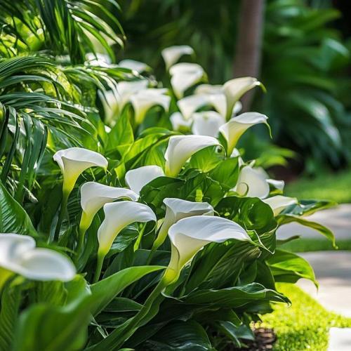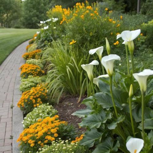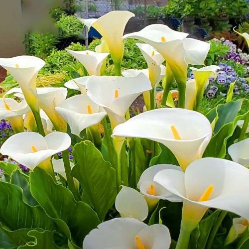 Для посадки в цветники и в контейнера, подойдут гибридные каллы. Они могут быть желтыми, красными, фиолетовыми и даже черными. Их можно скомпоновать, создав уникальные композиции, но и по отдельности они выглядят великолепно. У некоторых гибридов листва имеет необычную окраску. Такие растения даже до цветения вызывают интерес и приковывают взгляд.