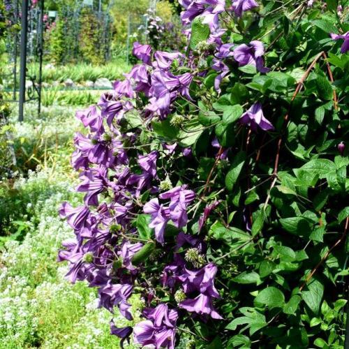 Очаровательная многолетняя лиана с эффектными колокольчатыми пурпурно-сиреневыми цветками. Цветёт обильно с июня по сентябрь. Этот сорт морозостойкий и простой в выращивании. Красиво смотрится в сочетании с другими растениями.