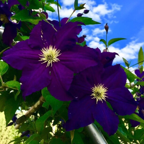 Клематис Viola (Виола) с цветками насыщенного фиолетового цвета просто невозможно не заметить в вашем саду! Особенно на светлом фоне или в сочетании с белыми клематисами.