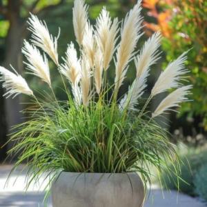Многолетнее растение, достигающее 100 см высоты, образующее плотные, крупные кусты. Листья в основном прикорневые, линейные, широкие, серо-зеленые, оттянутые на конце, по краю мелкозубчатые. Цветки мелкие, со сросшимися чешуями, кожистые, собраны в 4-7 цветковые колоски. Сорт знаменит своими красивыми метельчатыми соцветиями кремовой расцветки. Цветет с августа по октябрь, очень красива, благодаря крупным шелковистым метелкам, состоящим из мелких колосков. Теплолюбива. Засухоустойчива. Нетребовательна к почвам. Нуждается в ярком солнечном освещении. В зонах с прохладным климатом требуется укрывать на зиму. Сорт неплохо переносит морозы.