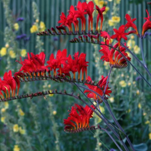 Перед прелестной крокосмией устоять сложно. Ее яркие цветки украшают солнечные миксбордеры с середины лета до заморозков. Это травянистое клубнелуковичное многолетнее растение высотой около 60 см. Листья широколинейные, светло-зеленые, длиной 60-80 см. Цветки длиной 3-5 см, воронковидные, от оранжевые, желтые, красные, собраны в колосовидные арочные метелки. Цветет с конца июля до сентября.