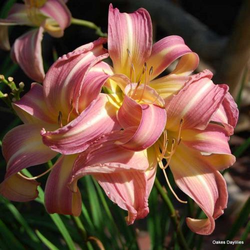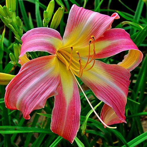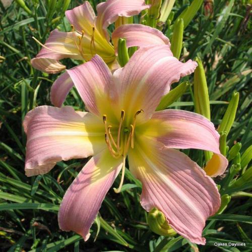 Спайдер -крупный, розовый с лавандовыми полутонами, широким глазом и белой полосой по центру лепестков.