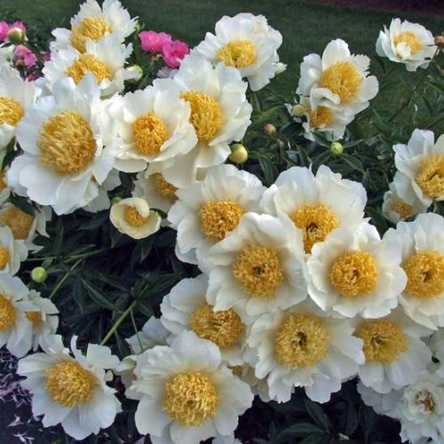 Один из самых популярных имперских белых. Крупный двухрядный японского типа цветок. Большие белые лепестки, которые при роспуске могут быть розоватыми, окружают широкий центр золотых стаминодий. Высокое около 90 см компактное растение с прямыми, прочными, тонкими, слегка с антоциановой окраской стеблями, листья у которых имеют темно-зеленую глянцевую окраску. Ароматный. Цветет в течение 2х недель, в средне-поздние сроки, является одним из самых надежных парковых сортов белой окраски.