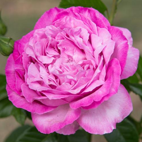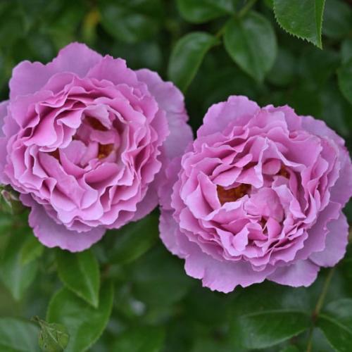 Красивые розы великолепного тёмно-розового цвета с лиловым оттенком будто сияют на фоне очень красивой темно-зеленой, здоровой и блестящей листвы. Цветки крупные, чашевидные, диаметром 9 см. очень пышные, густомахровые с более чем 60 лепестками, с волнистыми, резными, зубчатыми краями.