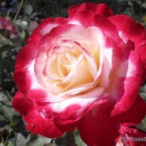 Double Delight – одна из самых хорошо известных и широко распространенных современных роз в мире. Никто не знает, относится ли ее имя к контрастирующим цветам, или «двойное удовольствие» это цвет и запах. Раскрывающийся бутон идеальной классической формы, медленно распускается. Долго стоит в срезке. Цветки вначале кремово-белые, с красным только на внешних лепестках, но по мере распускания малиновая окраска расширяется, особенно в жаркую погоду. Результат – потрясающий контраст слоев ярко-малиновых внешних лепестков и кремово-белого центра. Цветки очень крупные, появляются обычно по одному, редко по 2-3, на длинных, жестких, колючих побегах. Листва крупная, темно-зеленая, куст прямостоячий, но более ветвистый, и имеет лучшую форму куста, чем большинство чайно-гибридных роз. Сорт очень легок в выращивании, хотя и не исключено появление черной пятнистости или мучнистой росы. Красная окраска проявляется под воздействием ультрафиолета на пигменты лепестков. Это означает, что на кусте нет двух одинаковых цветков, ведь погодные условия все время меняются. Это также объясняет, почему цветки остаются белыми, если Double Delight выращивать в теплице, где ультрафиолет задерживается стеклами. Аромат очень сильный, сладкий, фруктовый. (ARE)