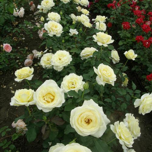 Это бледная роза, окраска которой варьирует от почти белой да цвета лимонного шербета. В центре цветка окраска самая интенсивная. В отличие от многих бледно-окрашенных сортов, этот сорт хорошо переносит неблагоприятные погодные условия: и жару, и холод, и влажность; цветки остаются чистыми и свежими. Крупные, заостренные бутоны уже обещают, что мы сможем любоваться крупными цветками. При распускании классических заостренных бутонов появляются круглые роскошные цветки – часто диаметр цветка из 45 лепестков превышает 13 см. Еспи учесть размеры цветков, сорт способен производить их поразительно много. Цветение продолжается до конца сезона. Поскольку цветки сидят на длинных прямых стеблях, сорт хорош для срезки. Кусты соответствуют цветкам: они высокие и мощные, со множеством мощных побегов, растущих от основания. Кусты могут вырасти до 1,2 – 1,8 м при ширине от 75 см до 1,1 м. Под стать цветам листья крупные и сильные. Они темно-зеленые, покрывают большую часть куста и идеально соответствуют другим отличительным особенностям растения. Зарекомендовал себя как сорт очень устойчивый к болезням, который может противостоять любым их атакам. В хороших условиях растения вообще не заболевают. Сорт сильный, не требующий большого ухода, устойчивый к болезням.