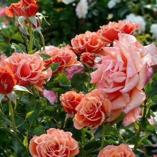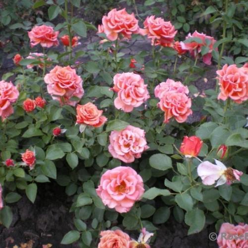 Необычная и очень привлекательная флорибунда с массой крупных ароматных цветков восхитительной формы в карамельных, кофейных и бронзовых тонах. Куст сильный, хорошей формы, устойчив к заболеваниям. Достигает 80 см в высоту. (www.fryers-roses.co.uk)