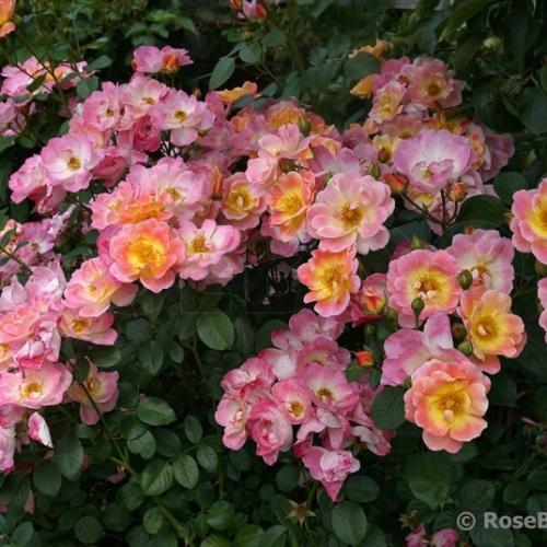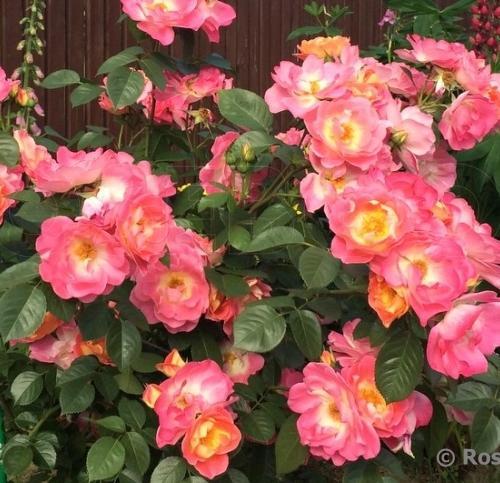 "Никаких сиреневых оттенков у сорта нет, однако игра оранжевых, жёлтых, лососёвых цветов изумительна. Сорт очень здоровый, потрясающе быстро нарастающий и бесперебойно и ошеломляюще цветущий. У меня за два сезона дорос до 150-170 см в изгороди из роз; цветёт так, что соседи специально заходят посмотреть.
