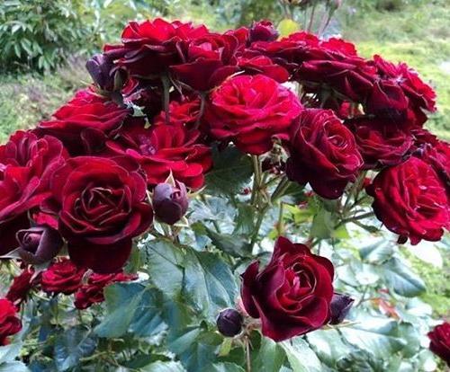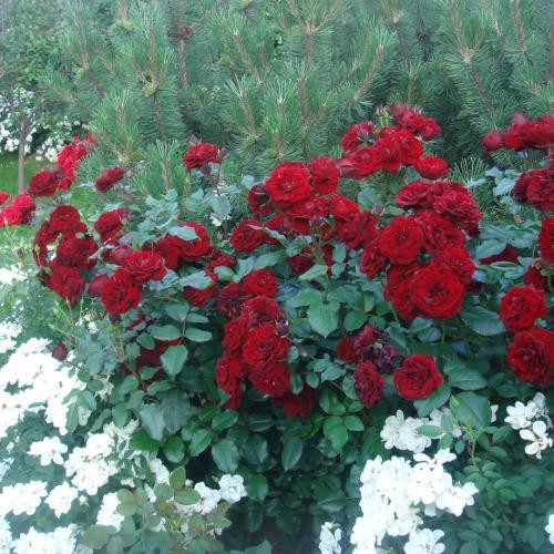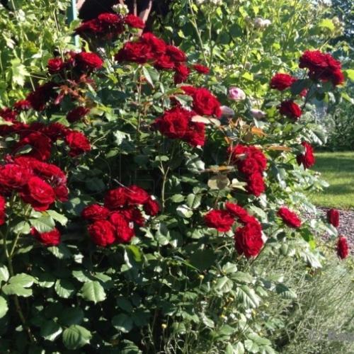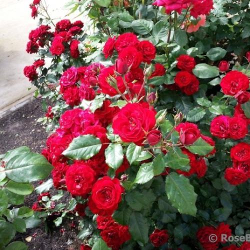 Идеальная маленькая флорибунда красного цвета: устойчивая к заболеваниям, яркая и обильноцветущая. Она практически не ароматная, но ничто не сравнится с насыщенными темно-красными цветками, оттененными темной блестящей листвой. Цветки махровые, хотя в центре обычно видны золотые тычинки. Они долго держатся на кусте. Цветки собраны в кисти по 10-20 шт и прекрасно переносят солнце и дождь. Сорт сильнорослый. Цветки долго стоят в срезке. Несколько подвержен черной пятнистости, но листва настолько темная, что инфекция практически незаметна. (ARE) У этой розы густомахровые цветки броской темно-красной, почти черной окраски. Фоном им служат блестящие темно-зеленые листья, причем молодая листва – оливковая с бронзовым отливом. Бутоны округлые, цветки уплощенно-шаровидные, в крупных кистях. Роза цветет все лето и начало осени. Куст пышный, округлый.