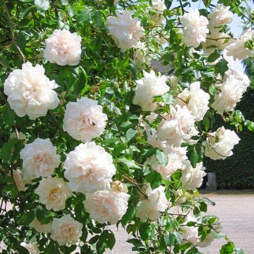 Эта известная нуазетовая роза популярна во всем мире, и в теплом климате цветет 12 месяцев в году. В более холодном климате зацветает одной из первых. Удлиненные, элегантные бутоны имеют нежно-розовый окрас. Развернувшись, цветки вначале нежно-розовые, особенно в холодную погоду, хотя обычно они быстро становятся ярко-белыми, и долго не увядают. Они слегка чашевидные, с волнистыми лепестками. Появляются на длинных сильных побегах в рыхлых кистях по 3-9 шт, великолепно смотрятся в срезке.