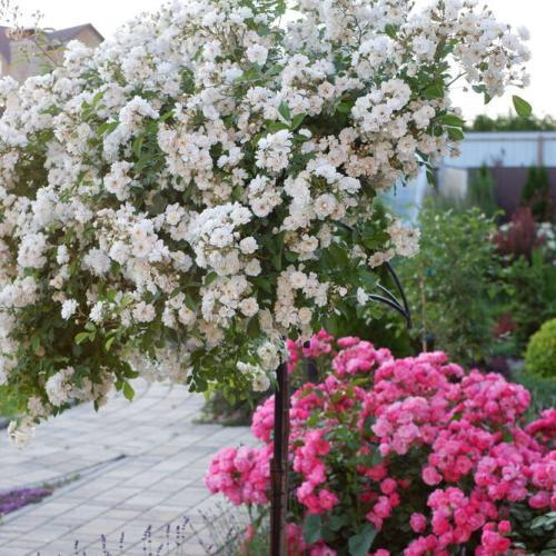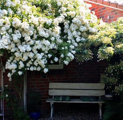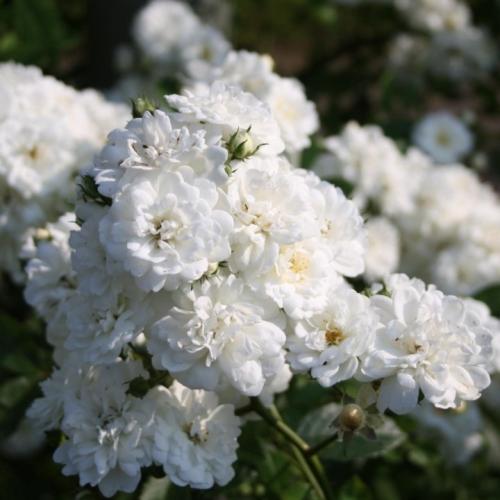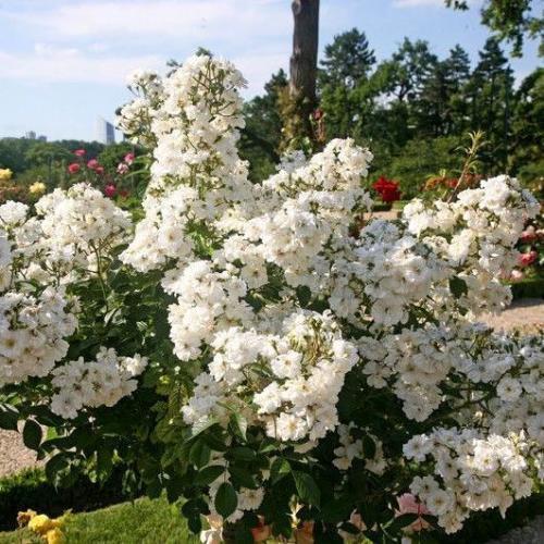 Этот современный сорт обладает шармом старинных роз. Он быстро стал популярен в северной Европе, где ведет себя, как крупный куст или невысокая плетистая роза. Полумахровые цветки чистого белого цвета, с лепестками разного размера и формы, которые к тому же закручиваются, благодаря чему розу не перепутаешь с другим сортом. Сорт очень мощный, выпускает кисти до 80 цветков, так что во время цветения растение усыпано цветками сверху донизу. В отличие от многих рамблеров, цветет повторно. (ARE)