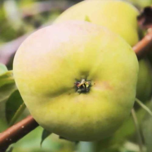 Плоды средней величины, продолговато-округлые, с заметной ребристостью и характерным швом по боку плода. Кожица плода гладкая, сухая, блестящая, зеленовато-желтая, с красным румянцем по большей части плода. Плодоножка средней длины, толстая, прямопоставленная.